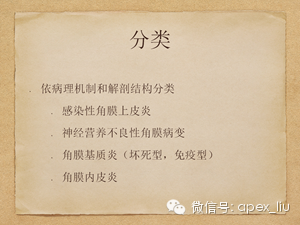 现在应用MEDSCAPE,和CORNEA第三版的相关内容,给大家汇报。