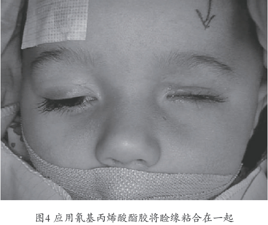 该文作者回顾了3 年内,在一家三级专科所有接受临时使用氰基丙烯酸酯胶进行眼睑缝合术的儿童。纳入研究的7名儿童应用氰基丙烯酸酯胶代替传统的缝合技术进行临时眼睑缝合术。适应证为眼窝扩张(n =4)、穹隆加深(n =2)、假体复位、摘除术后结膜下脱垂(n =1)。年龄范围为3周~14岁,平均2.7年。胶水眼睑缝合持续0.5~13周,平均4.5周。所有患者都未出现不良术后并发症,所有患者对应用氰基丙烯酸酯胶水眼睑缝合的耐受性良好,其在临床使用中也很方便。最后作者得出结论,该项技术快速且有效,应用于临时眼睑缝合术中还可以避免了全身麻醉药的使用,且降低了费用。