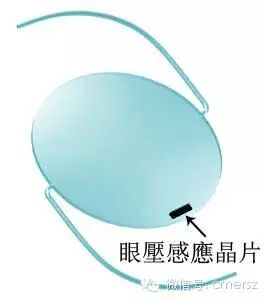 而有关24小时眼压监控的最新研究,将设备更进一步改良,发展出植入式无线眼压监控仪(Implanted Wireless Device For Monitoring Intraocular Pressure)。在病人接受白内障手术时,同时植入监控仪器(图2),仪器有特别的供电及数据存储装置,无需外接外界的任何设备,只需医生手持数据读取仪器在眼球前面进行扫描,即可获得眼压数据。而这一研究亦开始应用在病人身上,最新的数据发布在国际权威杂志上,短期研究结果显示所植入的仪器未有引起任何眼部副作用,医生亦能稳定地获得眼压度数。甚至有研究提出将微型感应晶片植入人工晶体内(图3),如此将更提高测量的质量。