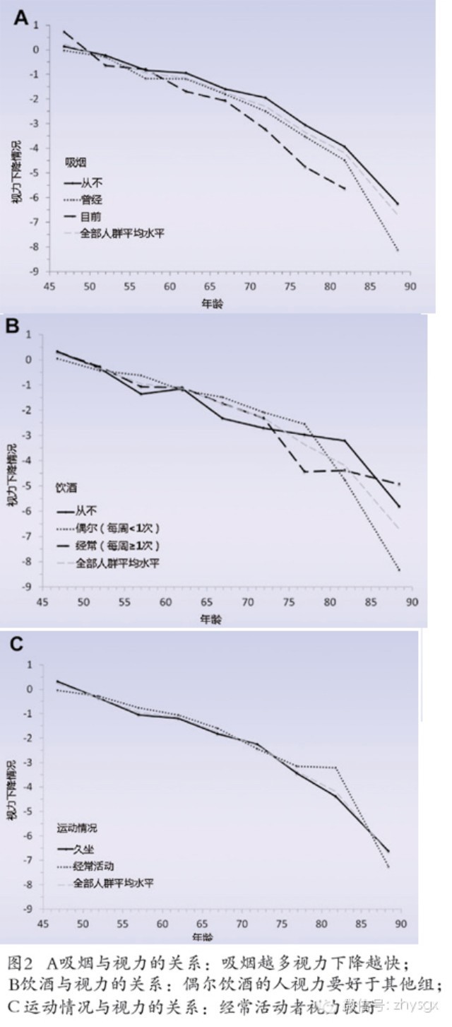 【据《Ophthalmology》2014年6月报道】题:吸烟、饮酒、健身与视力变化之间的关系——BDES 20年随访研究(作者Klein R等)
