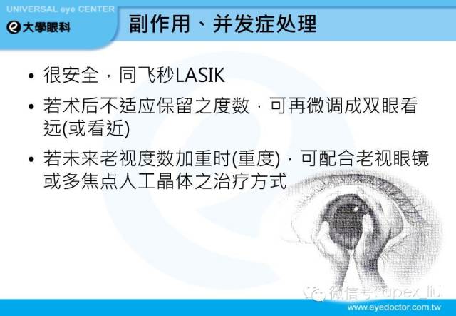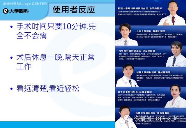 其他还有许多院区的医师也都接受了这项矫正手术,共同的反应就是:手术时间短、不会痛、恢复快、看远清楚,看近轻松