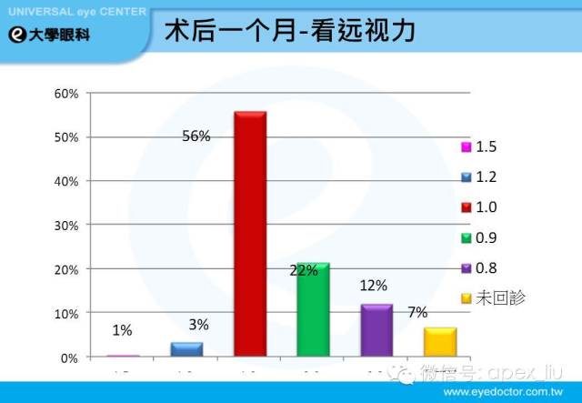 一直到术后一个月的随访,远视力都能维持很好0.9以上的也持续超过八成