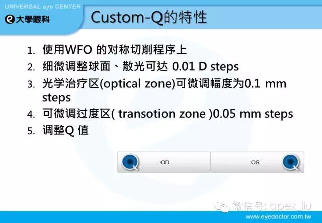 林丕容 @崔敏 :一眼WAVEFRONT OPTIMIZED(优化)另一眼q值调整