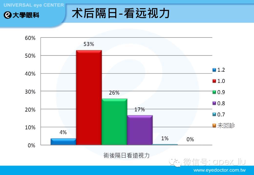 看远的视力恢复得相当迅速,术后第一天回诊远视力在0.8以上的患者高达八成以上