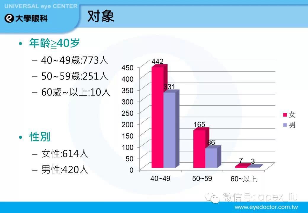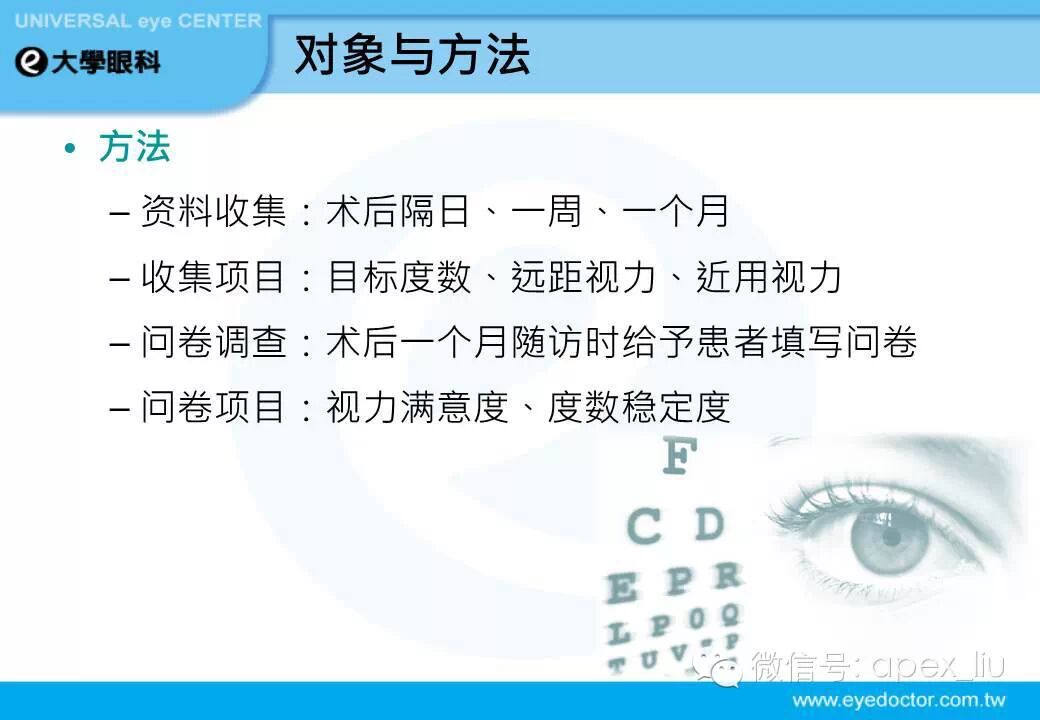 接下来我们来谈谈临床上实际的运用状况,就是针对我们进行微单眼视老视矫正的患者所进行的术后视力追踪统计