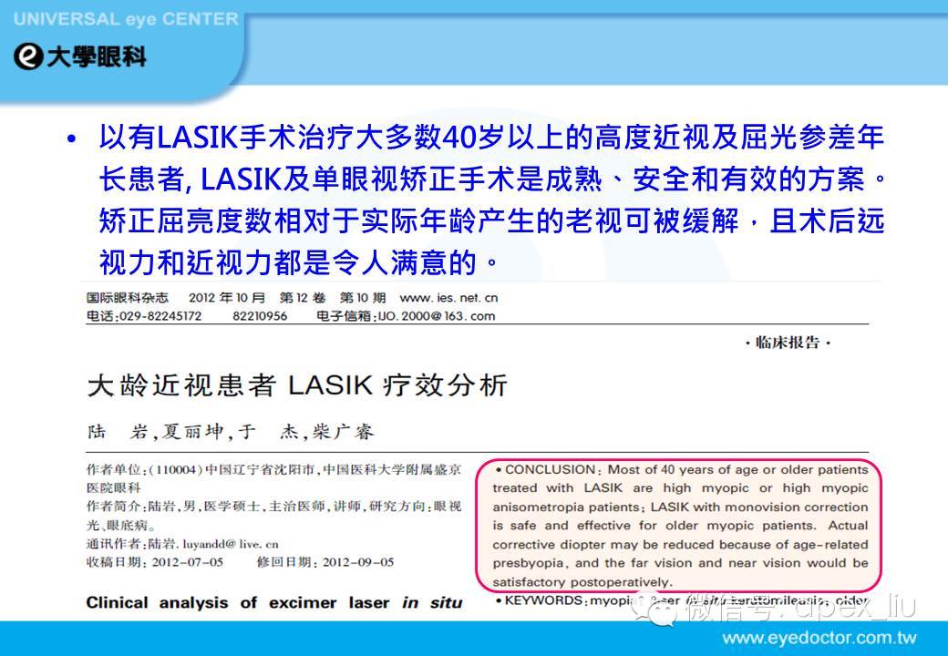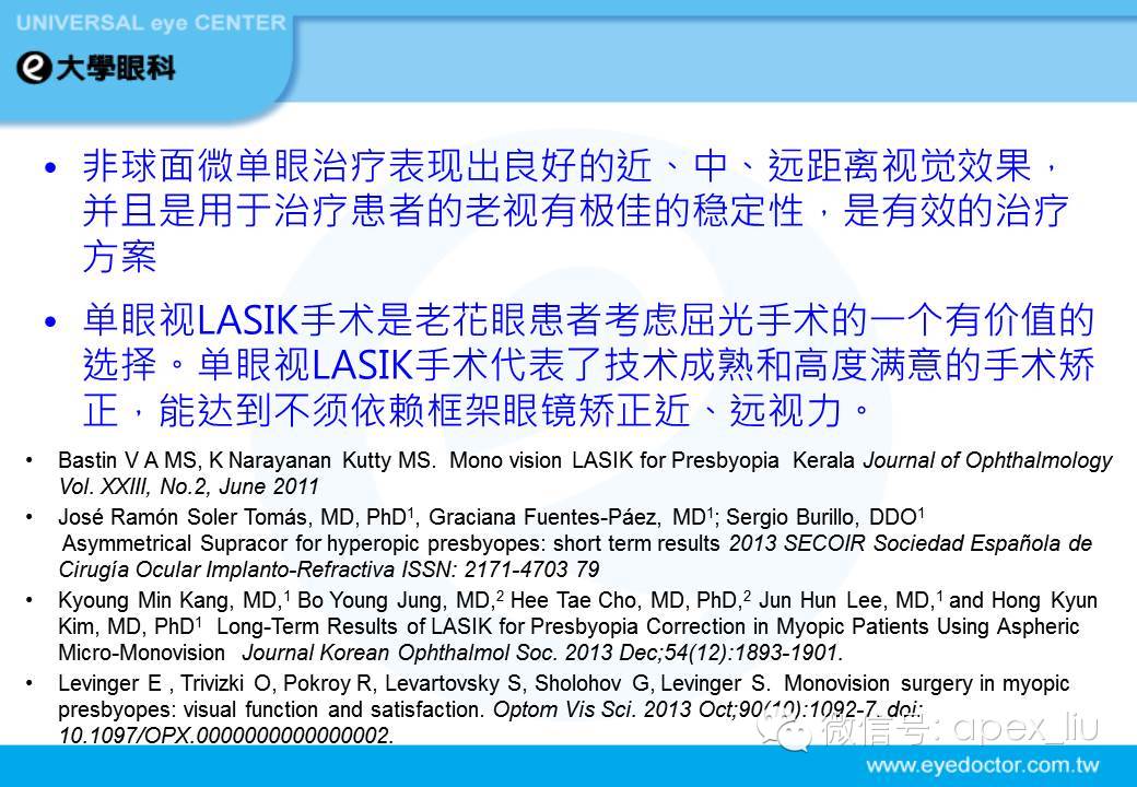 目前有许多文献资料都是支持并且推崇这种微单眼视的准分子激光老视矫正
