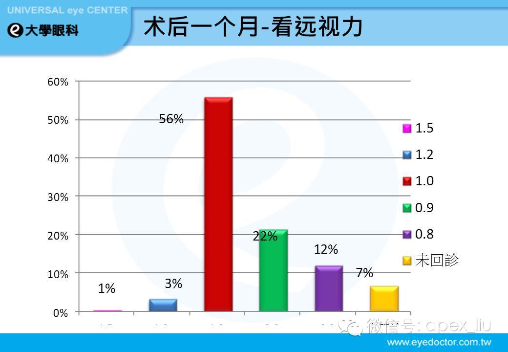 一直到术后一个月的随访,远视力都能维持很好0.9以上的也持续超过八成