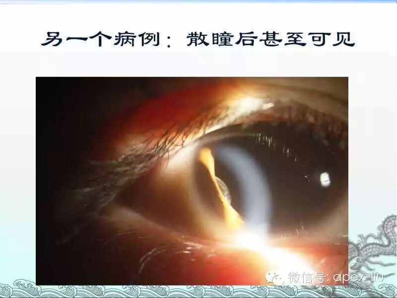 这个病例是苏州理想眼科医院郭晓枚院长遇到的并提供的图片, 当时在群里也讨论过,大家认为可以用激光将囊肿打破,瘪掉后缩小或消失,再考虑手术。