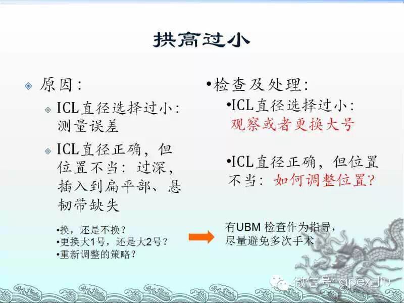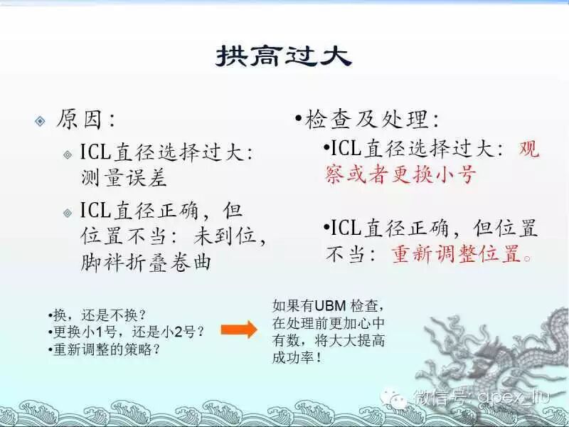 张斌:问题一:课中讲到全景UBM模拟拱高比术后实际稍高,个人认为术后实际有虹膜瞳孔领张力压迫后推ICL的因素。通过大样本数据可修正模拟公式