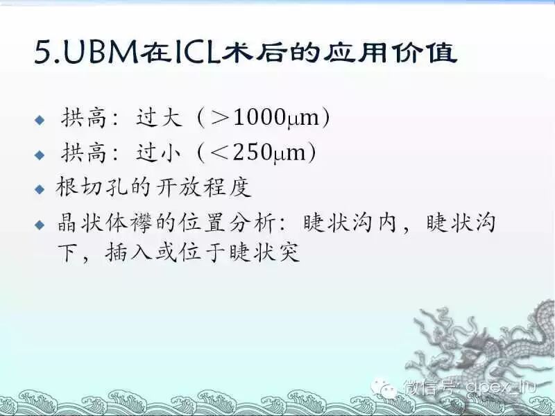 张斌:请教问题二,拱高测量是从ICL前还是后表面到自然晶体表面?如果UBM与Pentacam起始计算部位不一致,数据可能误差大,毕竟ICL也有厚度