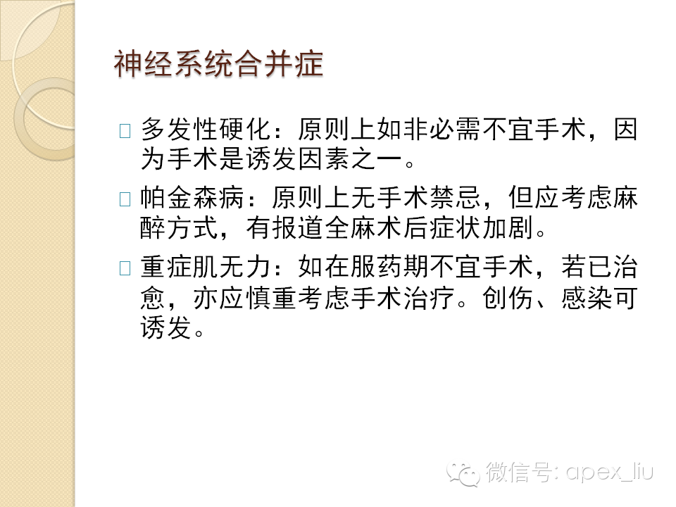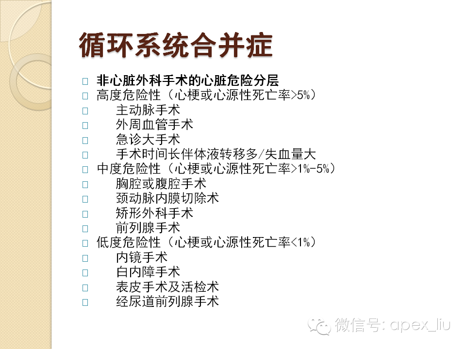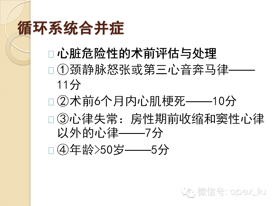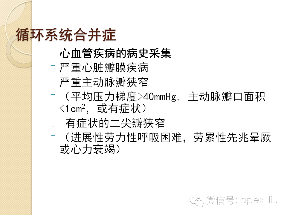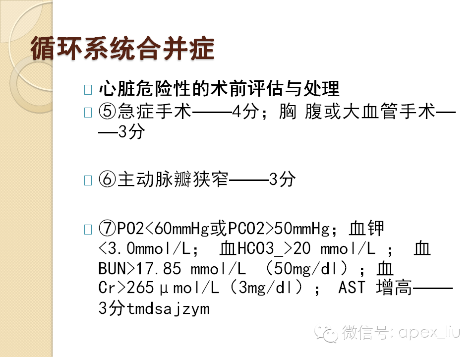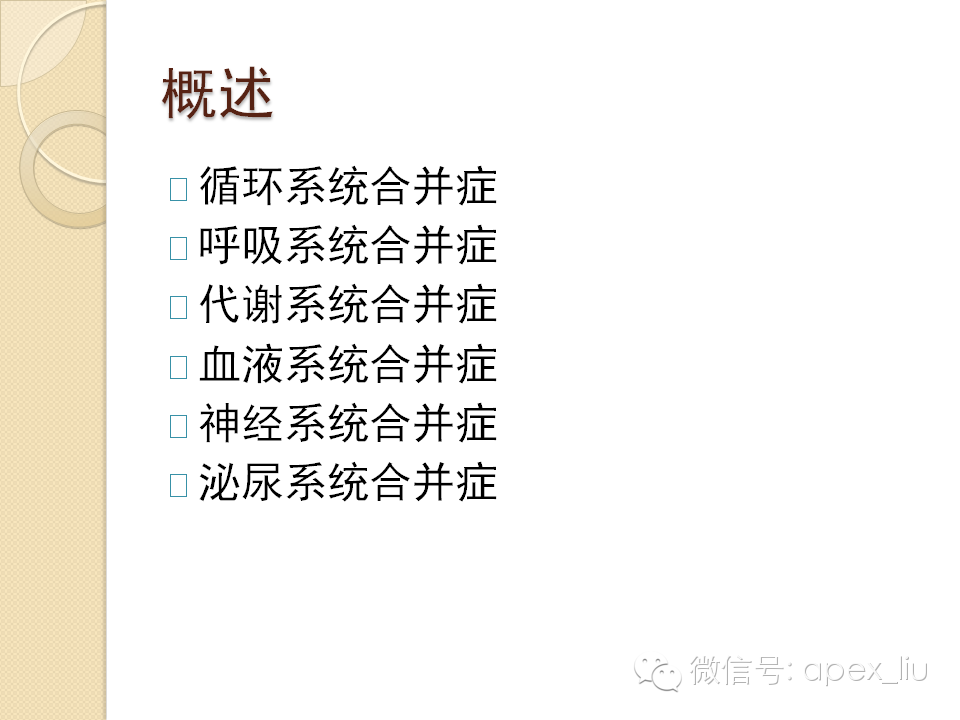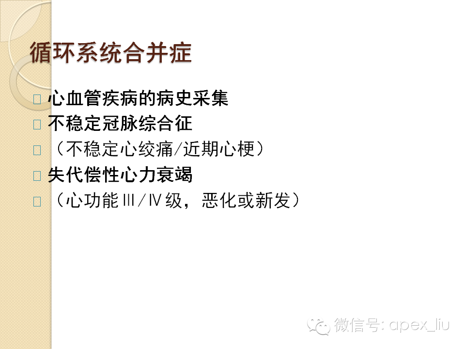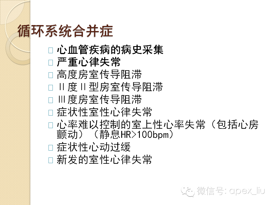 今天就六大系统进行汇报。首先是循环系统的合并症