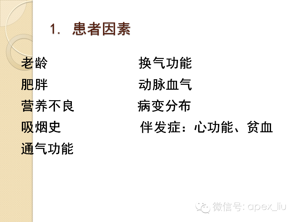 年龄>65岁,肥胖病人,吸烟史,心肺疾病史需要警惕。