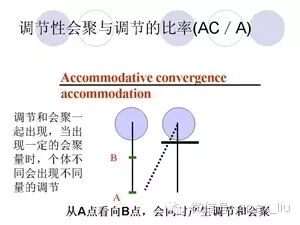 AC 即 Accommodative convergence 调节性会聚(用棱镜度来表示) convergence (可翻译为: 集合 或 会聚 或 聚散 )