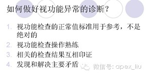 如果按前述的视功能检查的正常值标准,很多人都有一些检查结果“不正常”!而如果用这些不正常的结果对照这个诊断参考表格,会发现完全对不上号,无法给明确诊断。