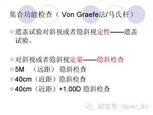 通过人为破坏双眼平衡,引导出斜视或者隐斜视。是临床最常用和基础的检查方法,大家都很熟悉,就不再赘述。