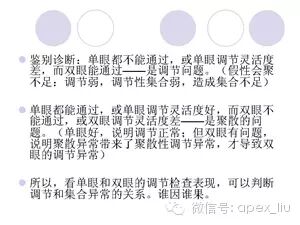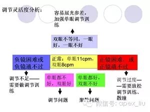 发现上述双眼调节不等同的情况时,有可能调节差的眼近视增加快而导致屈光参差。需要对调节弱的眼重点做调节训练。