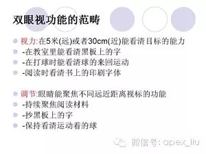 今天说的双眼视功能,是视光学领域中的视功能概念,与眼科临床说的“视力、视野、立体视、对比敏感度、色觉、暗适应”等不同。