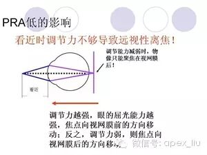 对于青少年儿童:看近时,焦点在视网膜后,形成远视性离焦,视网膜的发育追着焦点走,近视加快;