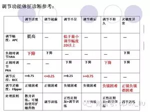 为方便大家学习、对照使用,我收集了各类异常的特点,做了这个《调节功能体征诊断参考表》。