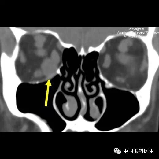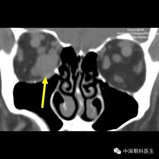 OVVs 可有一个或多个分散的静脉石。MRI 检查一般较少使用,除非 CT 检查无法确诊。较长的采集时间和呼吸、吞咽动作,甚至是地磁的方向均可影响到成像的质量。然而快速成像,增强 MRI 也可对此病进行确诊。OVV 在 T1 加权和 T2 加权成像较眼外肌呈低信号。如果血栓形成,OVV 信号更加复杂。需要强调的是如果没有诱发性动作,任何影像成像均可能很难发现。