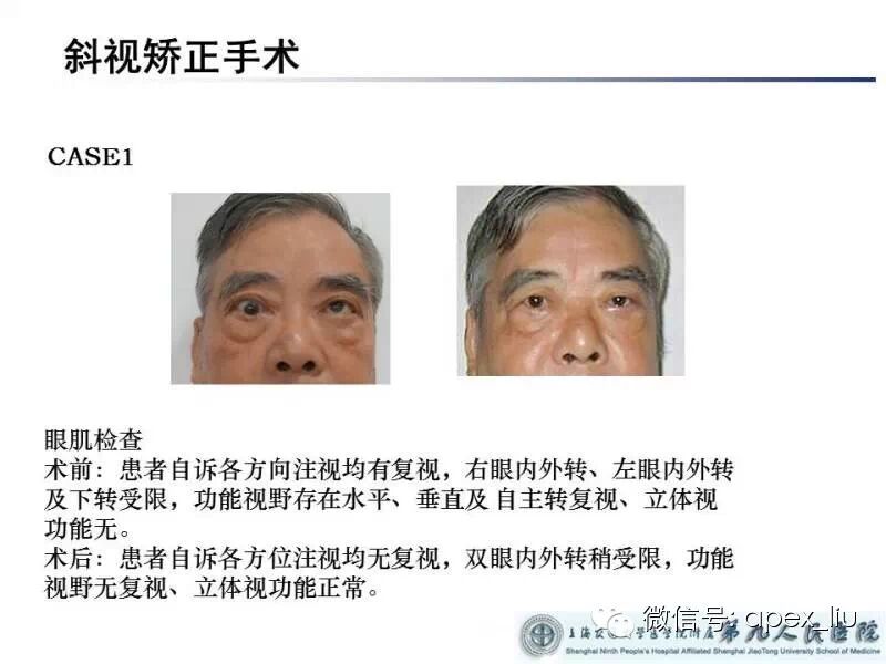 周慧芳:第二例眼肌手术的方式是右眼上直肌截除,左眼下直肌后退5mm。