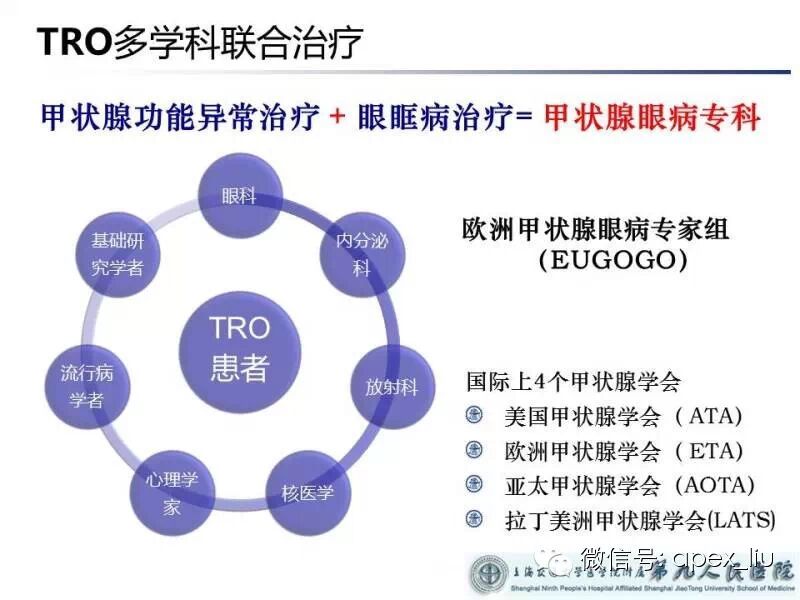 事实上,甲状腺功能异常和甲状腺相关性眼眶病是多系统的疾患,需要多学科的联合关注和治疗。XX目前已经成立了包括内分泌科、眼科、外科、核医学和中心实验室在内的甲状腺疾病治疗中心,专门致力于甲状腺功能异常和相关性眼病的规范化系统治疗和多学科联合治疗。