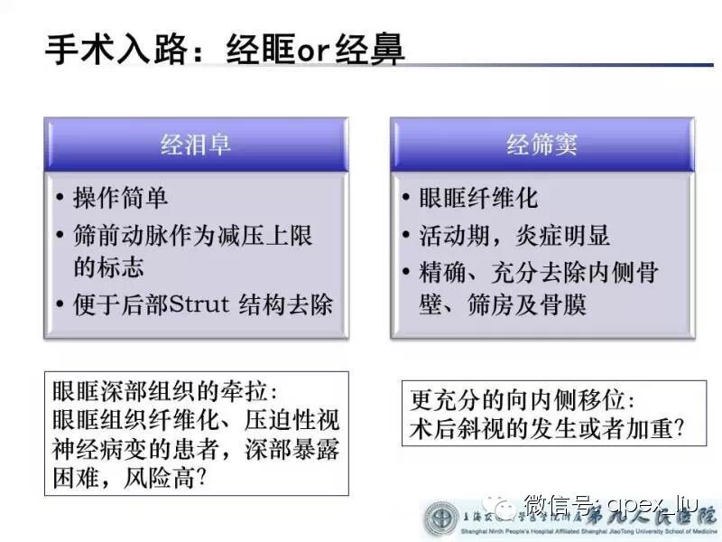 那么是经眶入路还是经鼻入路呢?各有优缺点,需要根据患者眼部组织情况、术者习惯、手术器械条件来选择。