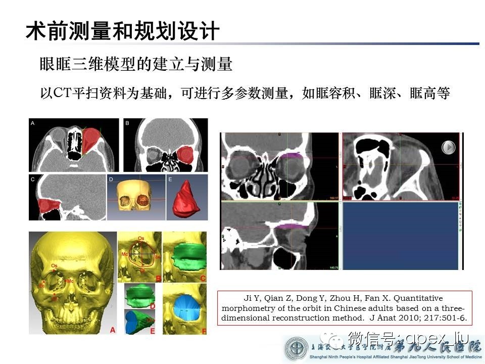 我们科从95年开始进行数字化技术辅助眼眶手术的研究。计算机导航技术帮助我们实现三位空间的定位和直观形象,内窥镜技术实现微创和直视下安全操作。我们将计算机导航技术和内窥镜技术整合,辅助眼眶减压手术 。