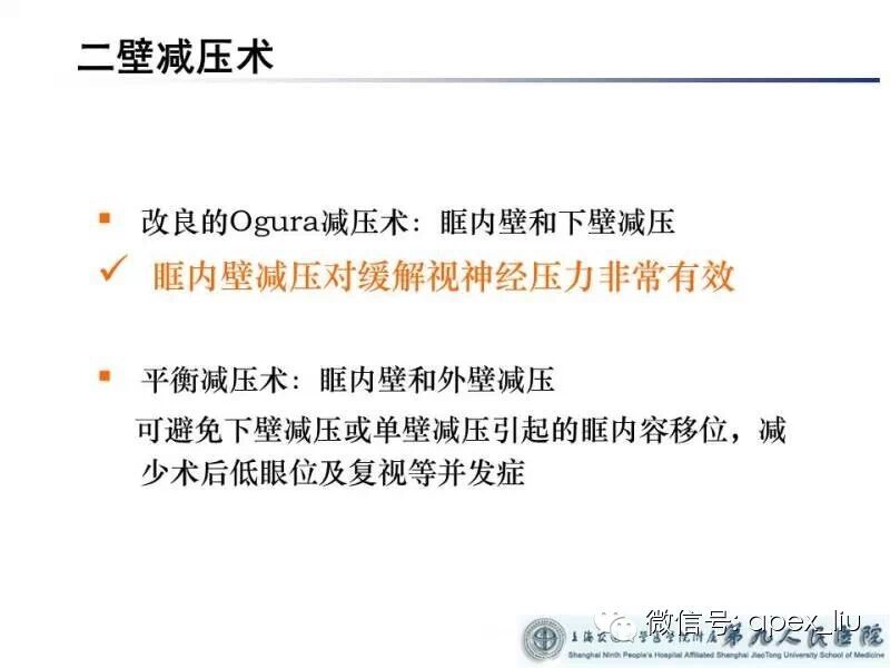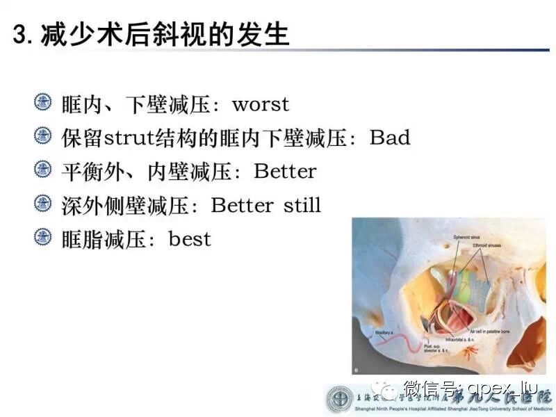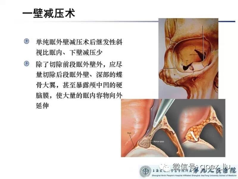 目前国际上推崇的一壁减压首选外侧壁减压,单纯眶外壁减压术后继发性斜视比眶内、下壁减压少。