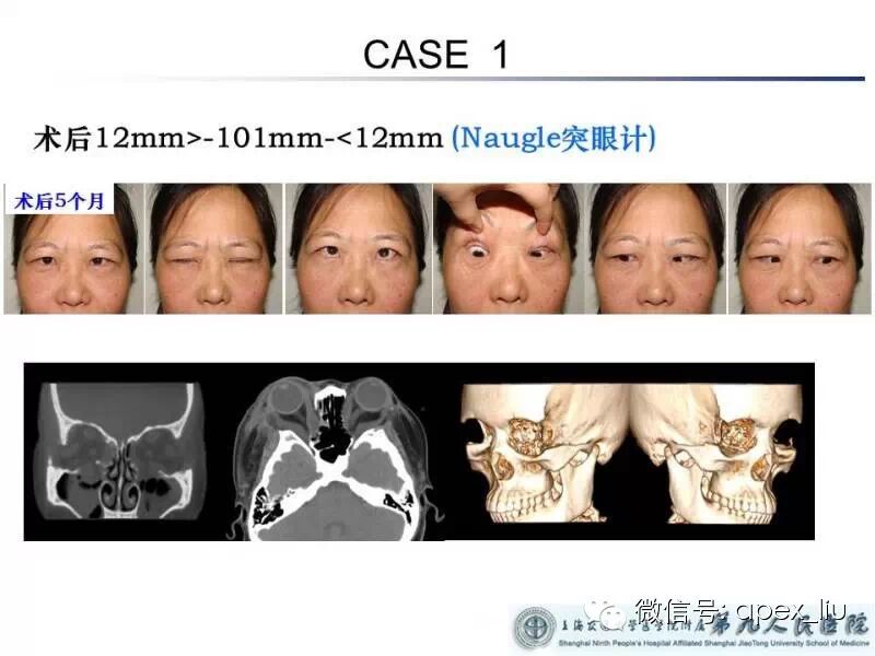 对该患者在内镜导航辅助下行双眼眶三壁减压术,患者术后左眼视力明显好转,从术前的0.3上升到0.8,双眼眼压降低,眼球突出度明显降低。