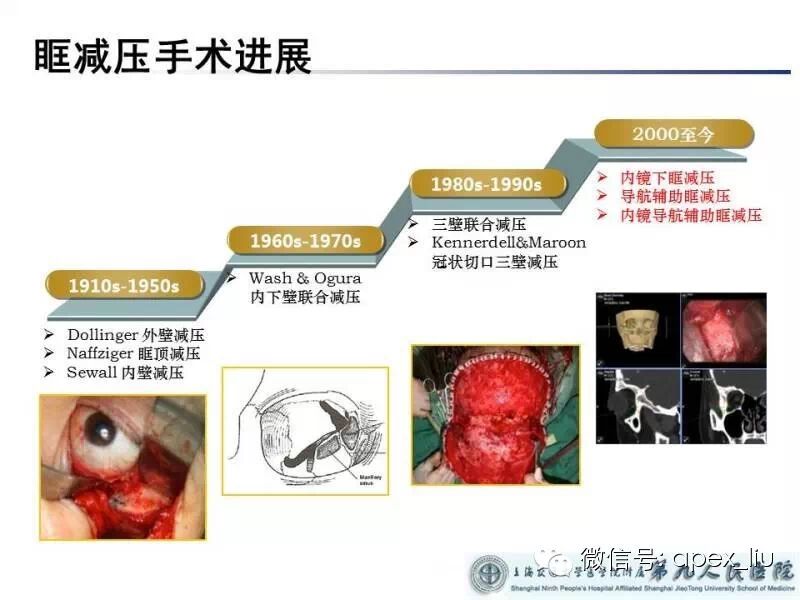 眼眶减压历经了4个主要的发展阶段。我们来看一下现代眼眶减压手术的进展和优势