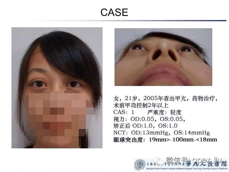 接下来我们看一例为改善外观而手术的病例。她看起来病情很轻,但患者对自己要求较高,希望矫正双眼突出。