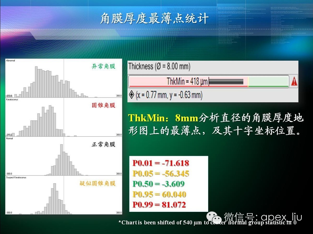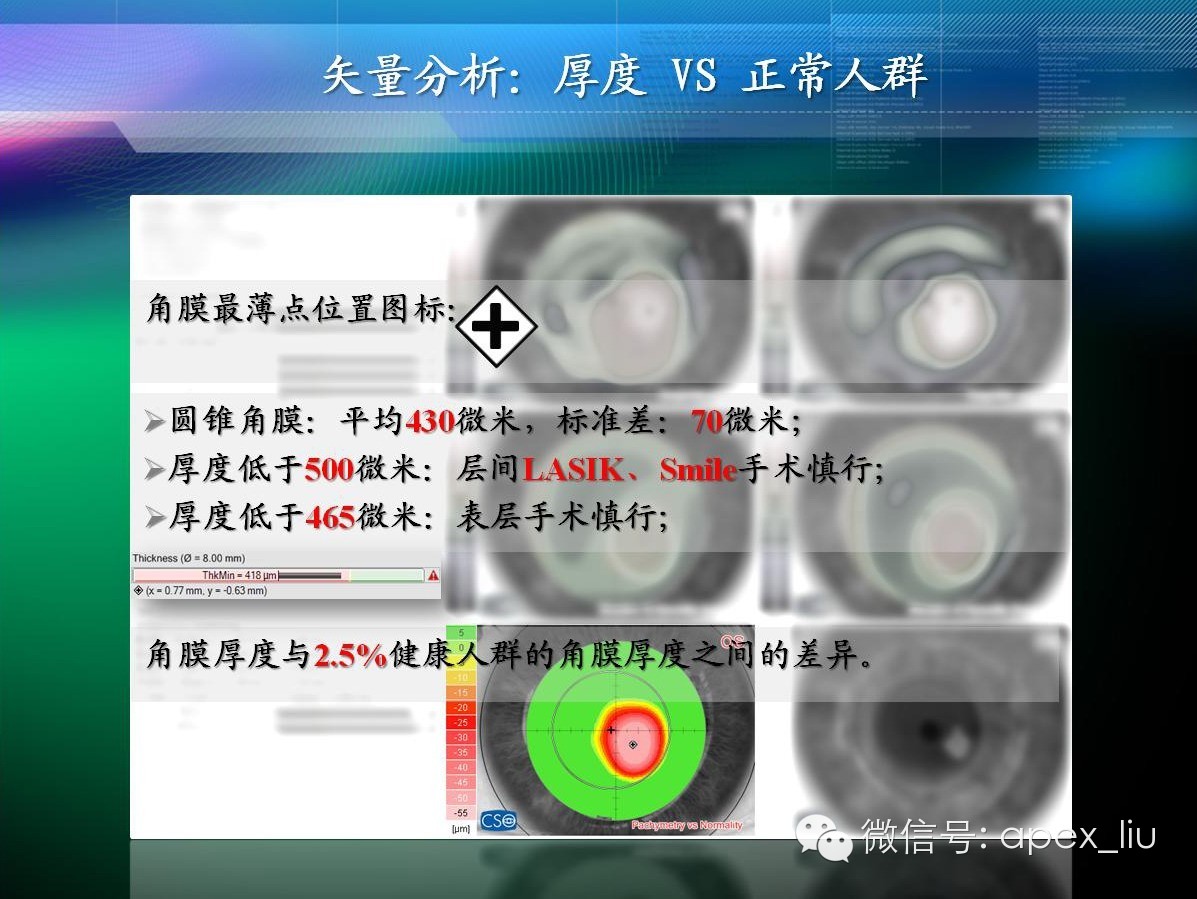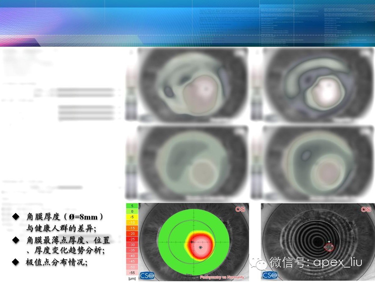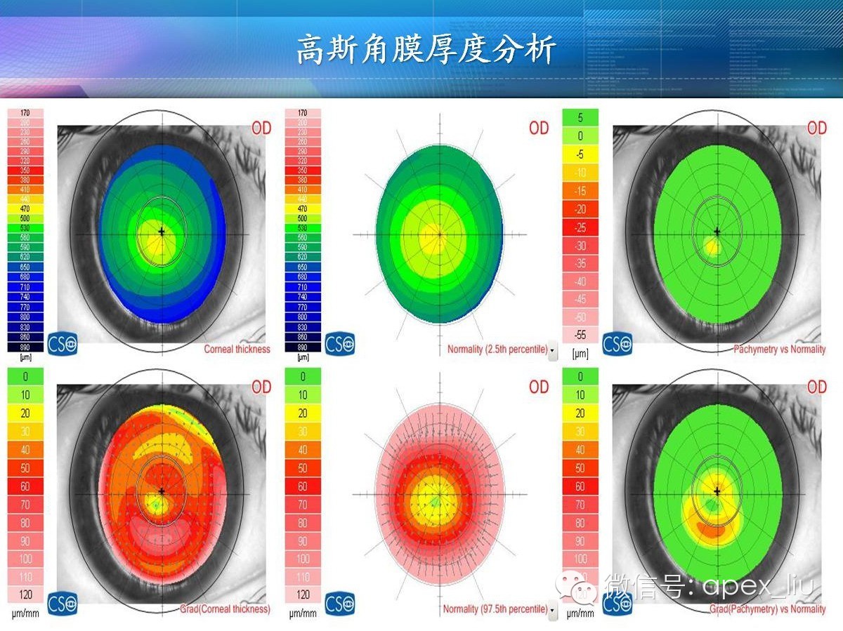 我们有时候会依据此图的数据来判断未来有可能选择的手术方式:圆锥角膜:平均430微米,标准差:70微米;