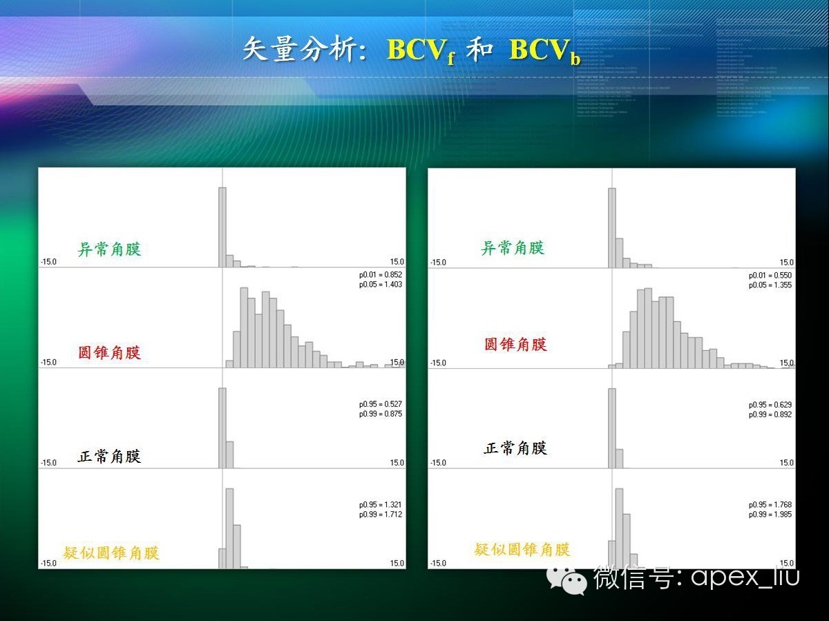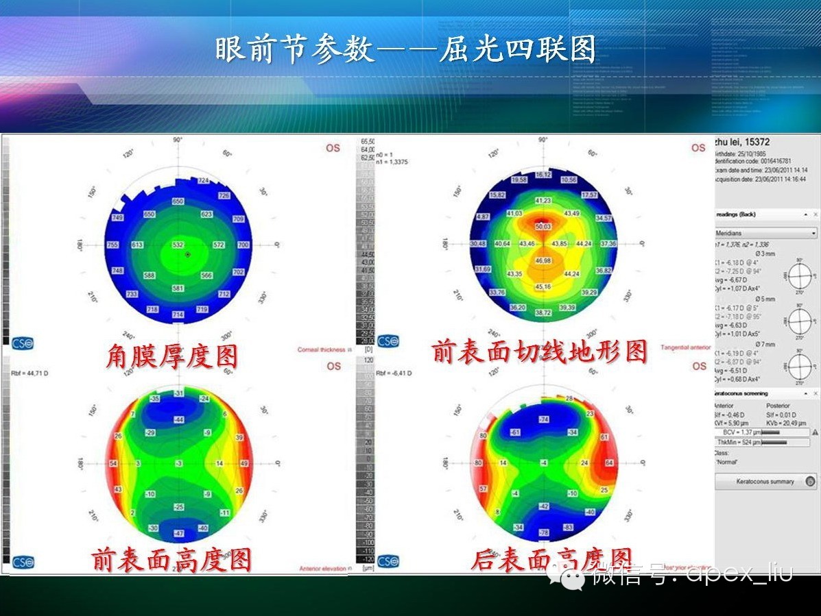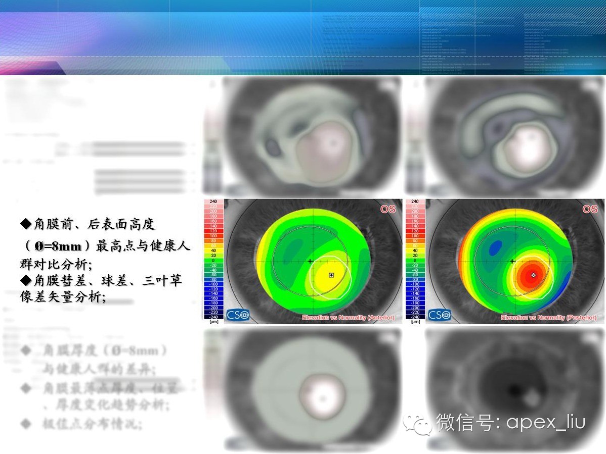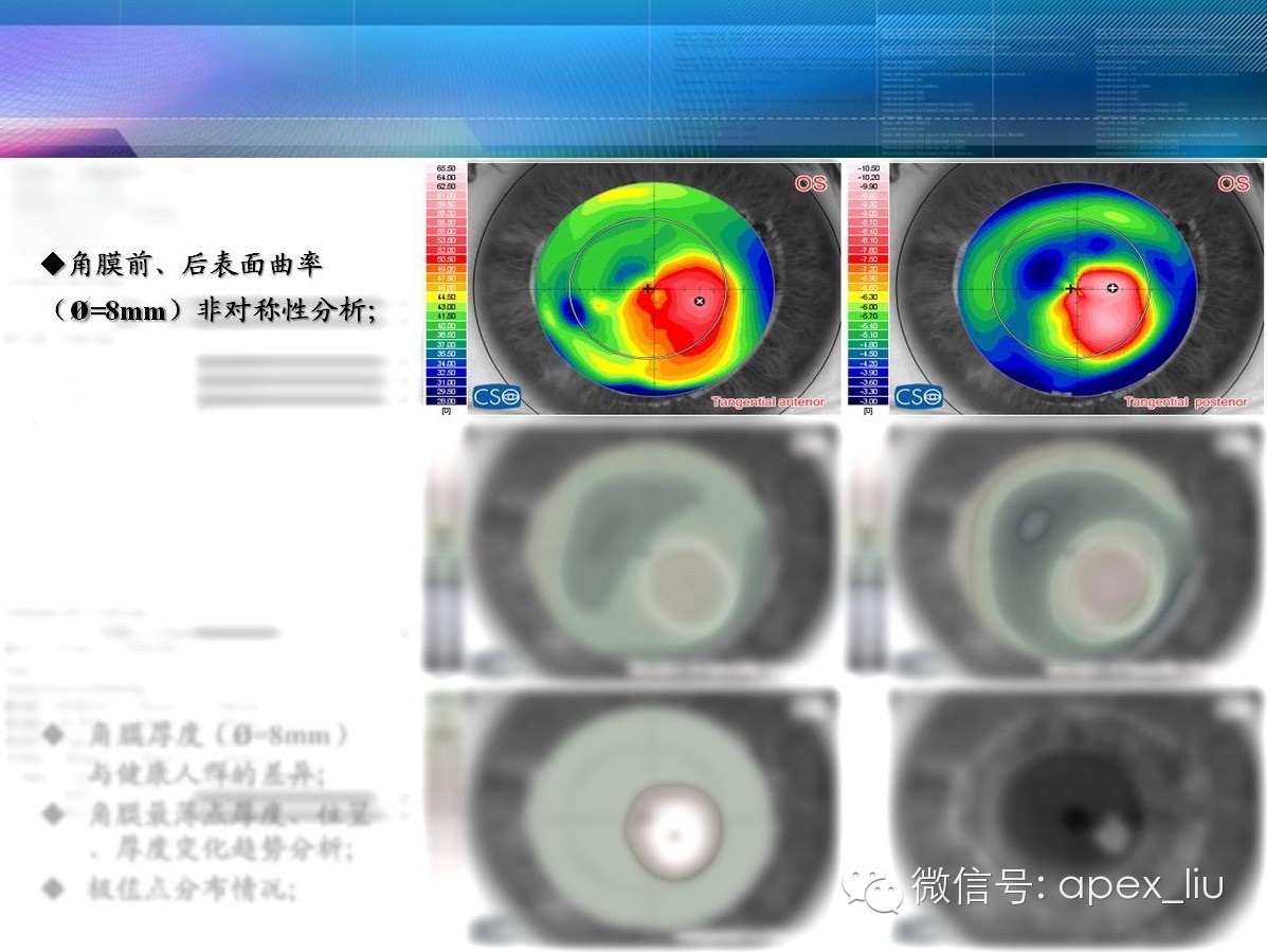 因为圆锥角膜几乎都是从后面开始,而极少出现仅仅是前表面圆锥角膜,而后表面一切正常的情况。