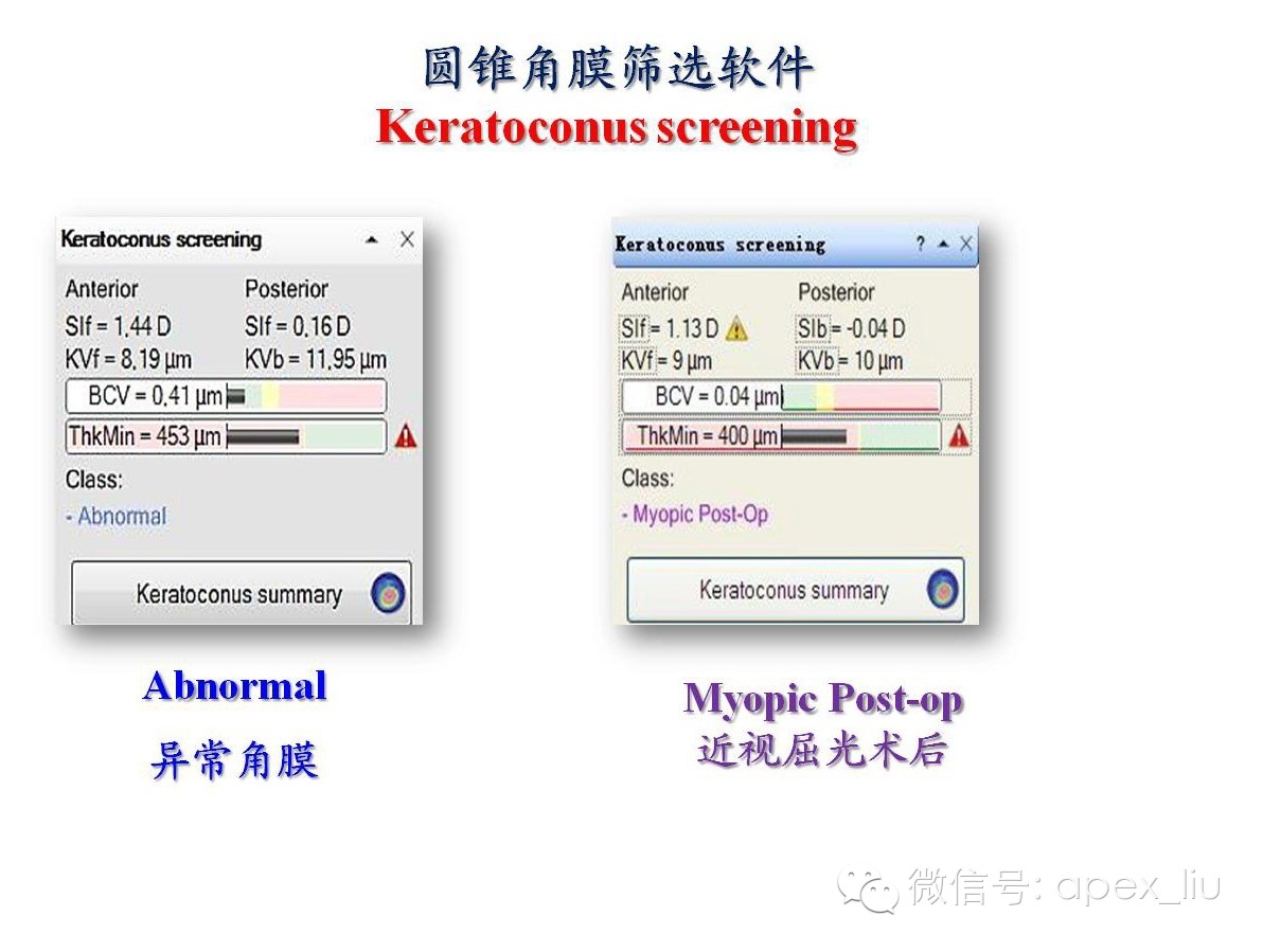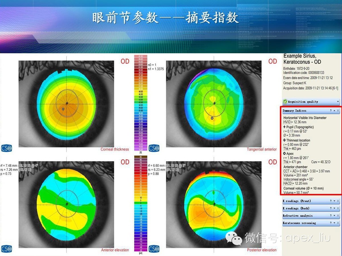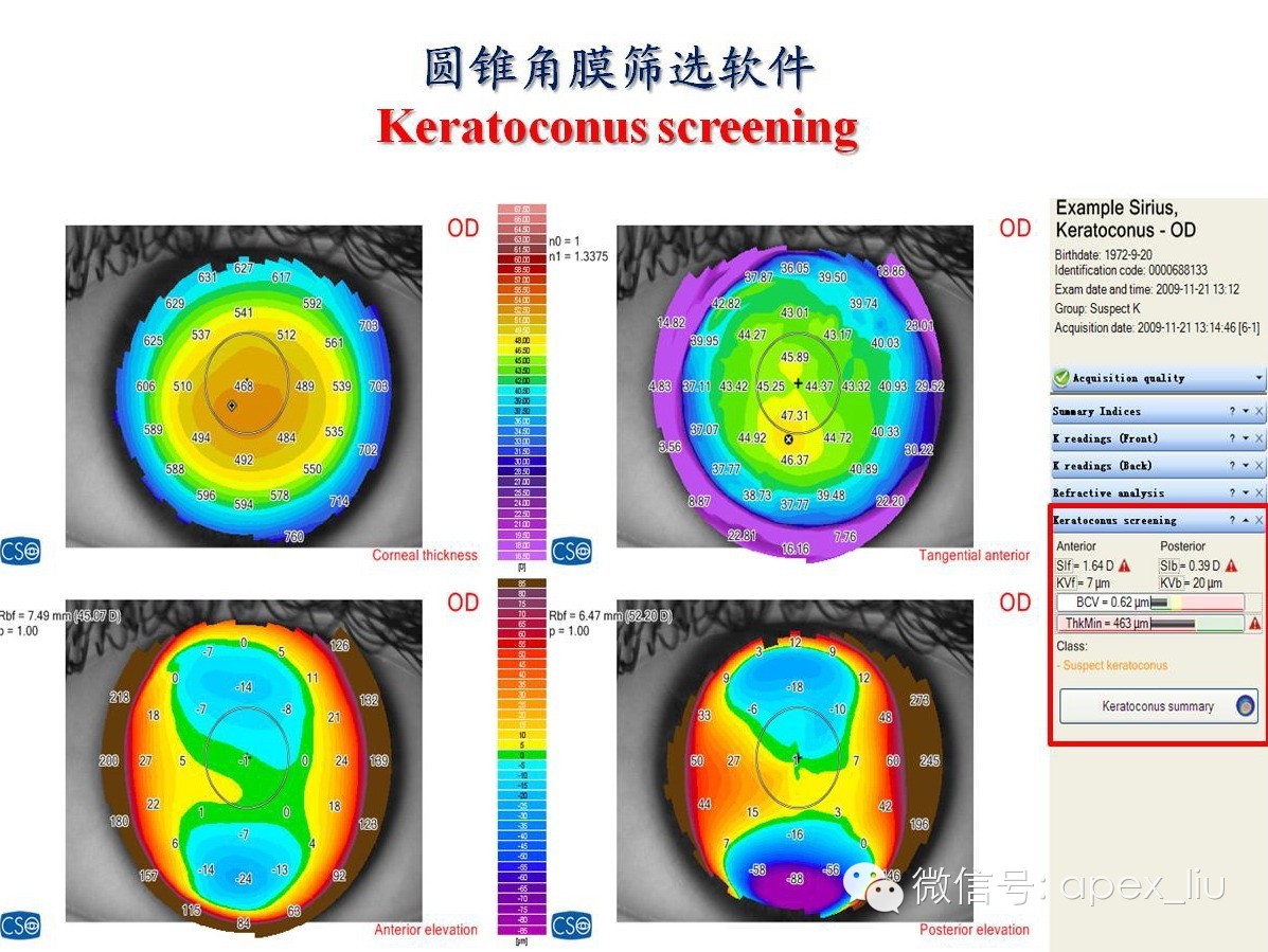 有了以上的参数之后,我们进入下一个主要的功能介绍:角膜屈光手术前的圆锥角膜筛查功能。