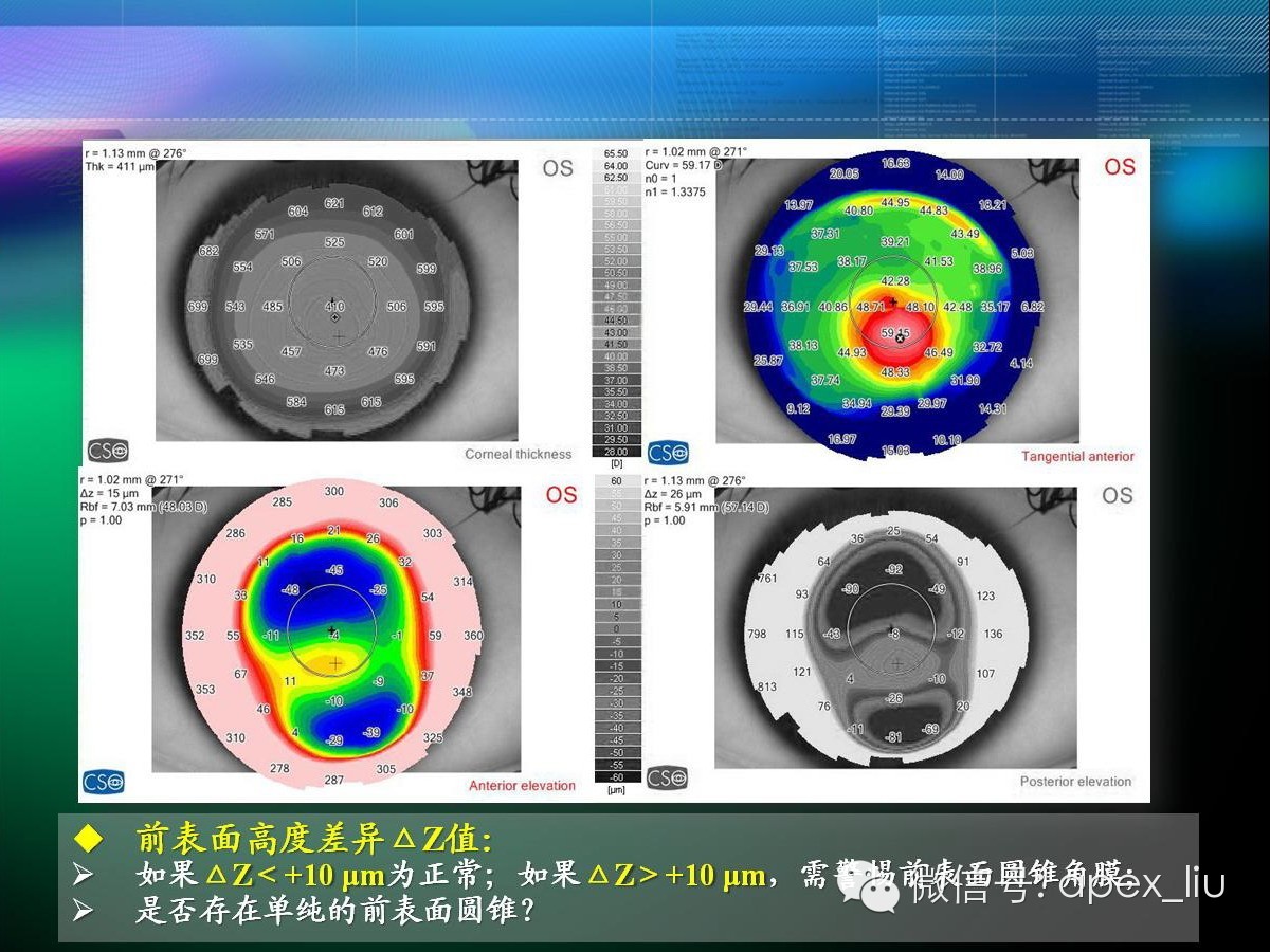 如果△Z < +18 μm为正常,如果△Z > +18 μm需要警惕后表面圆锥;