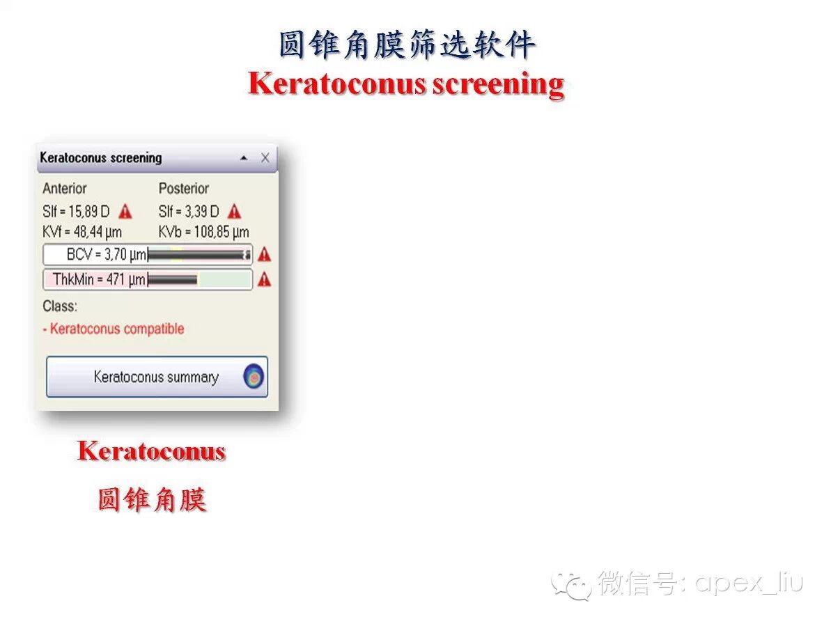 3、Keratoconus:圆锥角膜,并用红色进行警告;