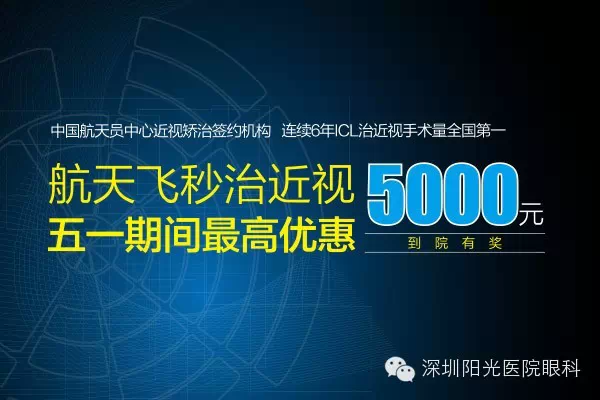 深圳阳光普瑞眼科专注近视矫治17年,是中国航天员中心治近视矫治签约机构,特在五一期间进行优惠关爱活动,来院者均可享受航天飞秒活动大优惠,同时可以参加眼转盘抽奖活动,双重大优惠,人人有奖,最高优惠5000元。